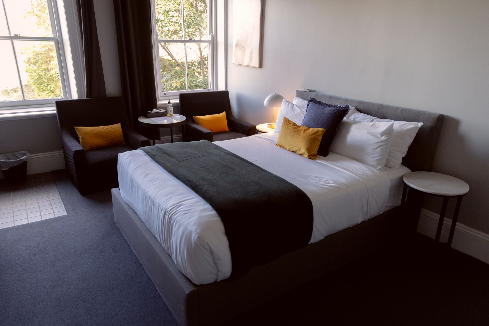 Experience luxury and relaxation in our popular Terrace Room. This spacious and bright room features floor-to-ceiling French doors that flood the room with natural light and open up to a private leafy terrace, complete with a dining table for two and a beautiful view of Bayswater road.